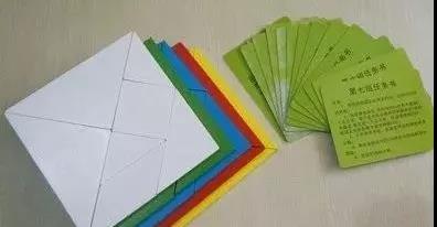2、五種顏色的七巧板,共7*5=35塊。材料可以選擇硬紙板、塑料板或者有機玻璃板。