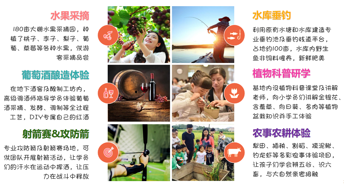 面向池州市內及安徽省內乃至江浙滬地區的團隊或企業,我們專業承接各類企業拓展訓練、企業年會、軍事魔訓、親子活動、夏令營、學生春秋游、研學游、家庭自駕游等活動。在這里您可以呼吸到新鮮自然的空氣和鮮果的清香,體會到“窗下蛙聲、檐下鳥鳴”的自然和諧的居住環境。會讓您忘記城市的喧囂,享受寧靜淡然的心情!